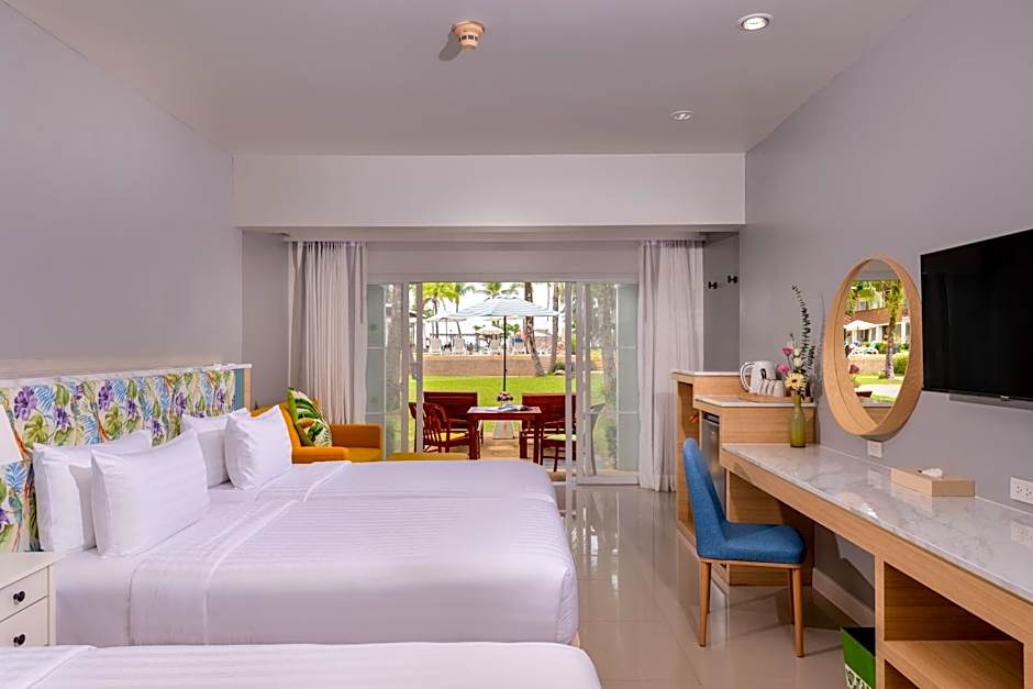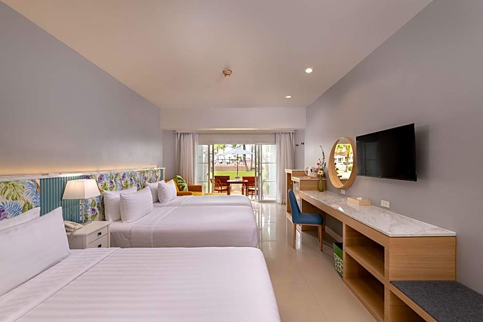 This family room's standout features are the pool with a view and hot tub. The spacious family room provides air conditioning, a mini-bar, a balcony with garden views as well as a private bathroom featuring a walk-in shower.